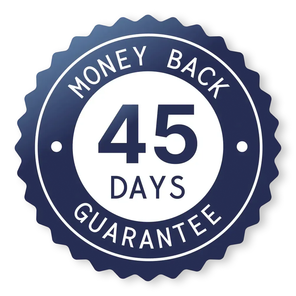 Your order today is covered by our iron-clad 45-day 100% money-back guarantee. If you're not satisfied with the results, simply contact us within the next 45 days and we’ll refund every single cent — no questions asked.