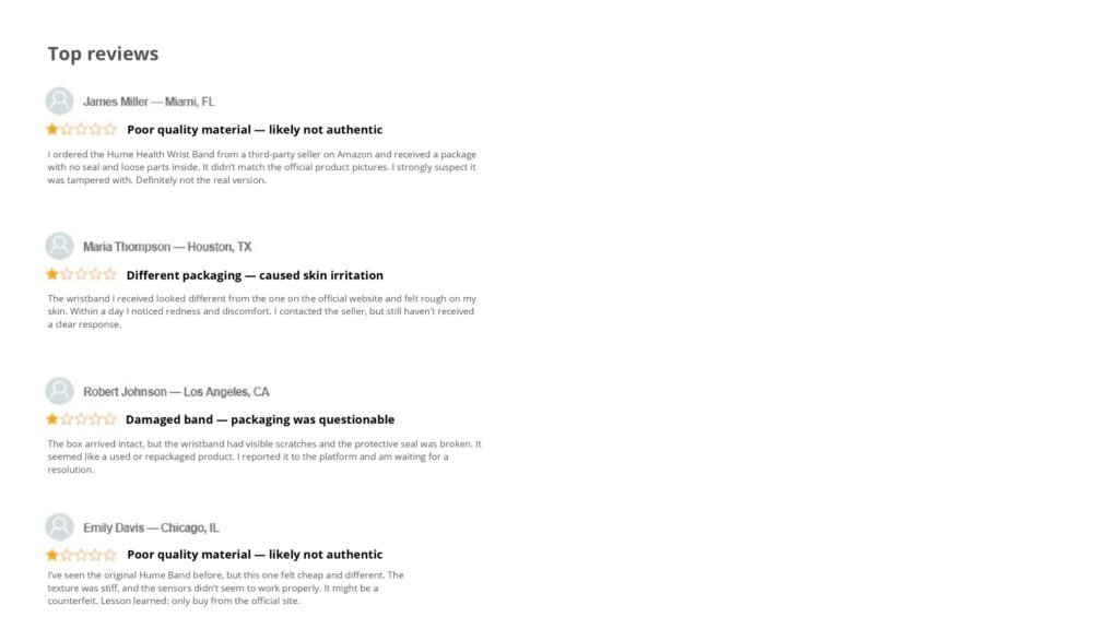 So as you can see, the risk of buying Hume Health Wrist Band on other websites and receiving a counterfeit product is real and exists!
